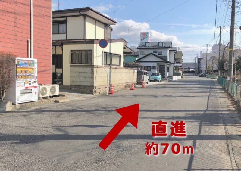 そのまま約70m直進します