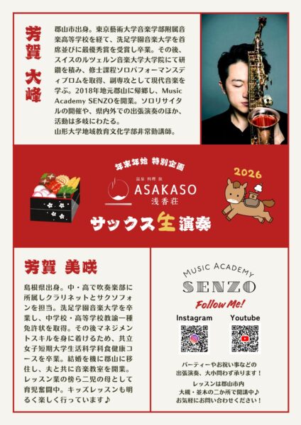 ASAKASO ロビー/MC込みで一回30分/約10名/サックス2本(芳賀大峰・芳賀美咲)+伴奏音源