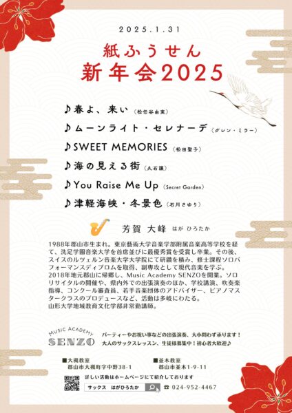 生の演奏を聴く機会が少ない生徒たちにとって、サックスをはじめ楽器の音色を体感し、音楽のよさを実感できる素晴らしい演奏会です。私は前任校も含めて、2回芳賀さんに芸術鑑賞教室をお世話になりました。ぜひ、多くの学校でこのよさを味わっていただきたいです。心からお勧めできる素晴らしい演奏会です!